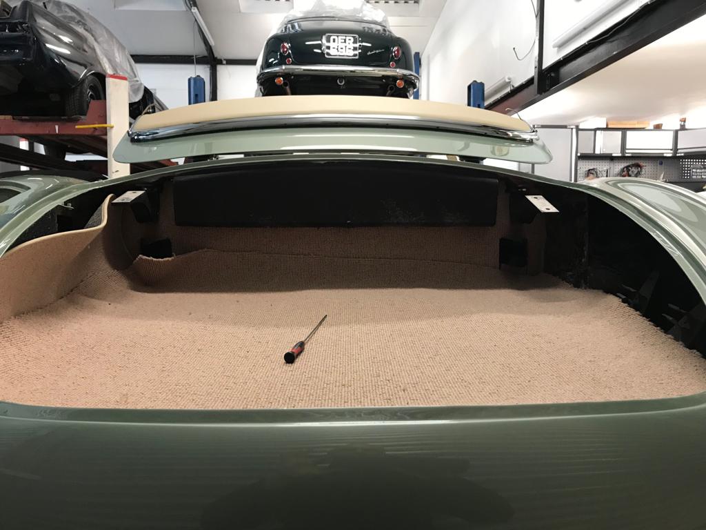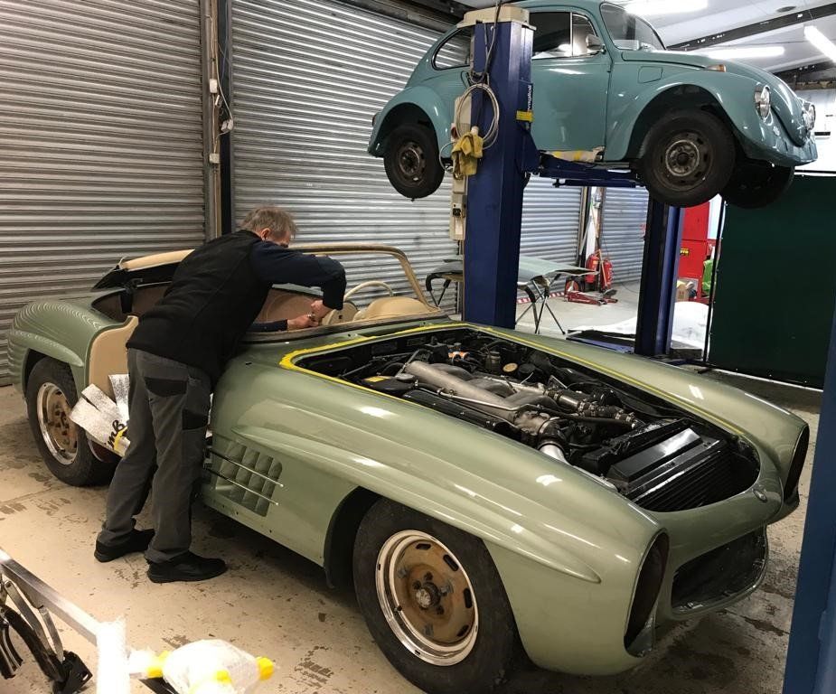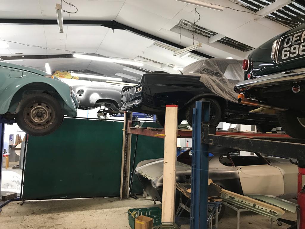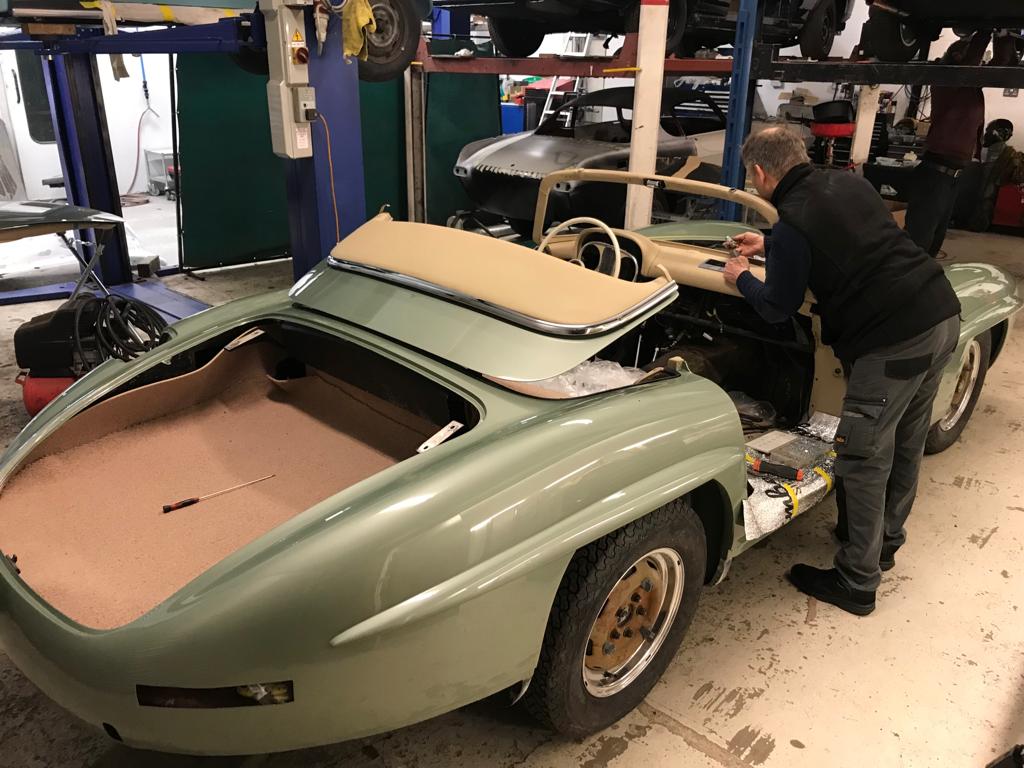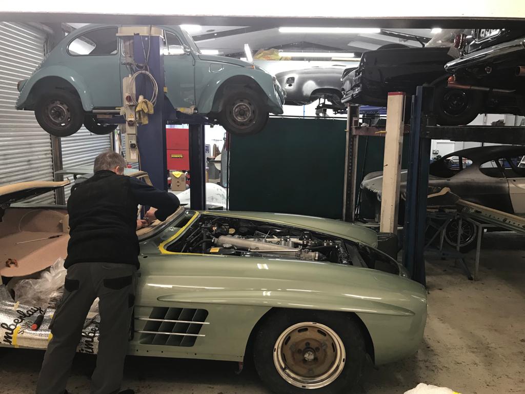 Back after a short holiday and moving a number of our long-term projects further forward. The fabulous Mercedes 300SL roadster has been given it’s coat of ice-green metallic paint – we think it looks superb – and the next steps are to fit the carpets and trim. The lovely Lancia Aurelia edges ever closer to completion, as we manage to get hold of some very hard to get parts to finish the job. The VW Beetle has also had it’s new coat applied (the 220SE we’ve featured before will be next into the paint shop) and the process of getting the 300SE cabriolet down to bare metal for its turn in the oven continues. Busy times at Templar Towers!