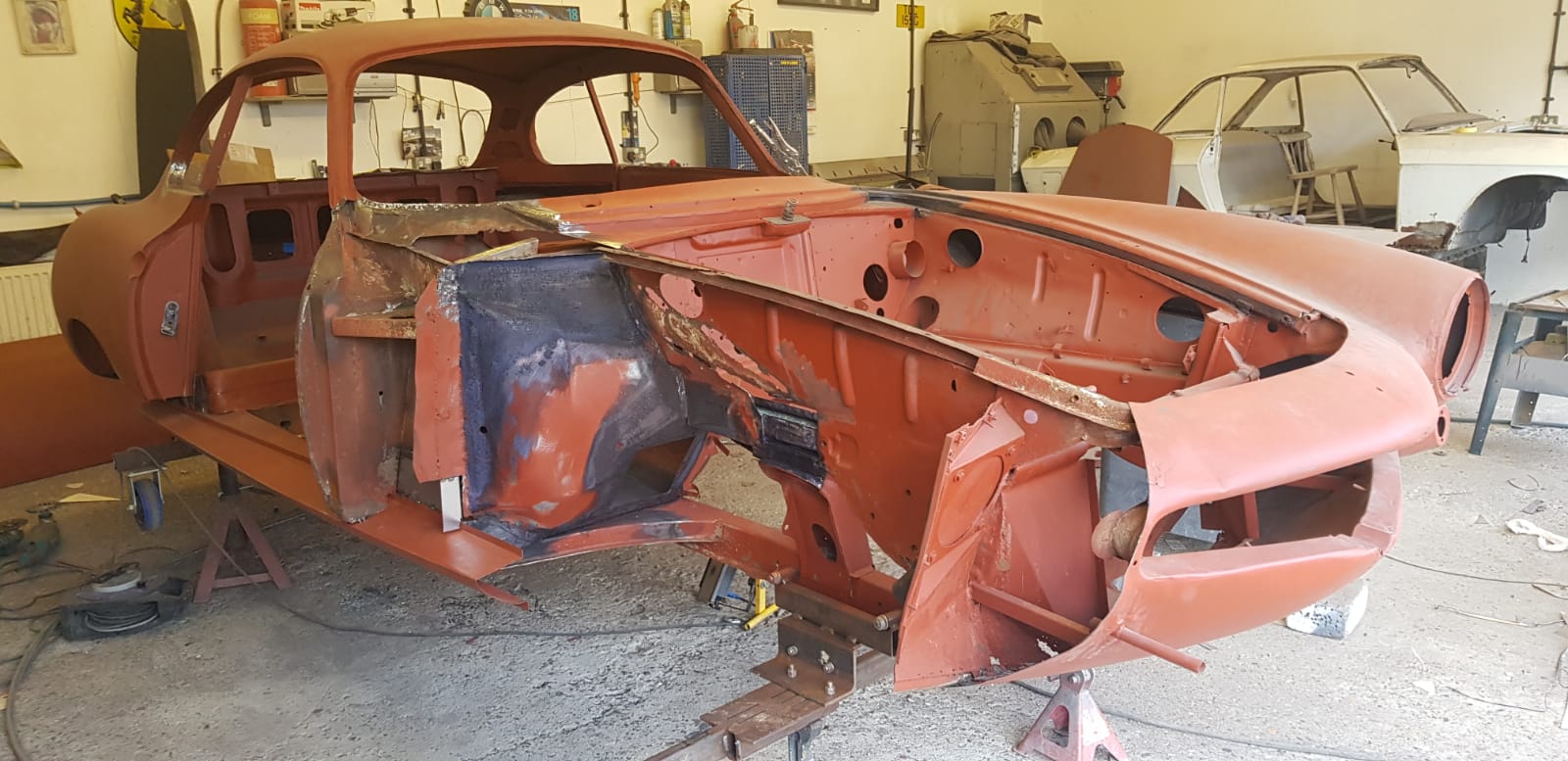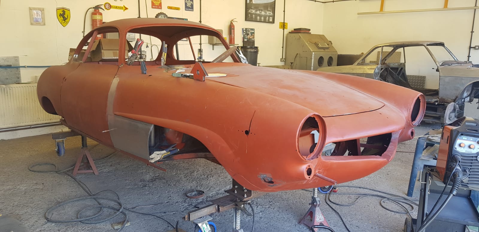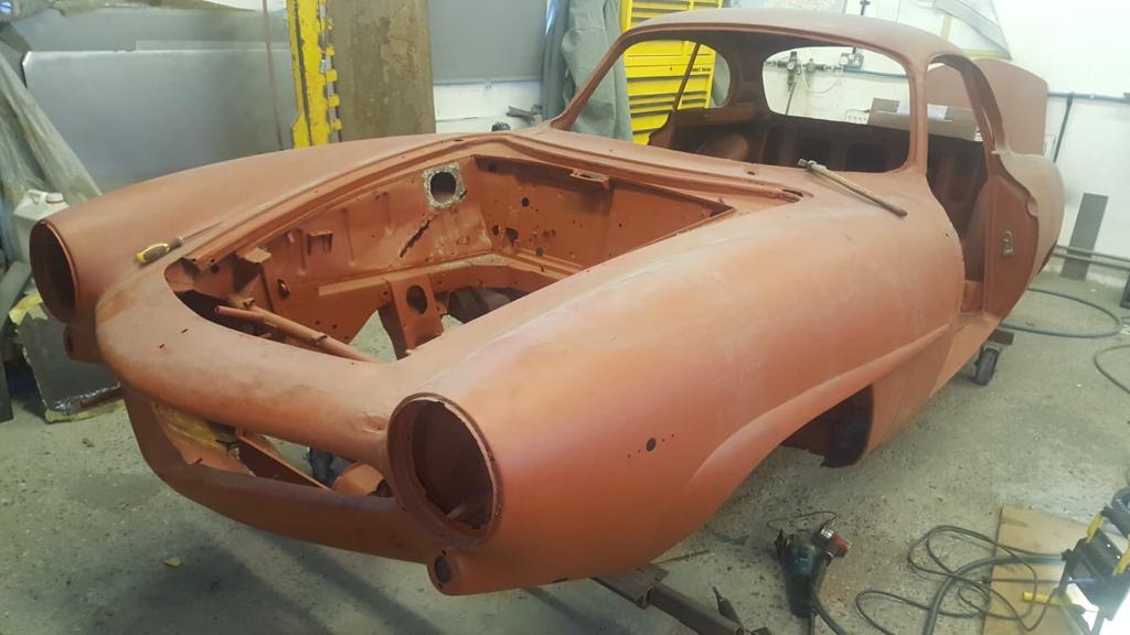 UPDATE - we now have one happy customer re-united with his lovely Pagoda 250SL, which is now a full convertible, with soft and hard-tops, as well as having had a mechanical re-fresh! One of our clients has asked us to convert a Mercedes-Benz 250SL California to a full convertible spec...This involves a lot of cutting and welding in a new section from a donor car, refitting, adding a soft top and much more - below you can see the new soft top in place. We now have the hard top to re-build so the client has the choice of soft top in summer or hard top for the rainy days.