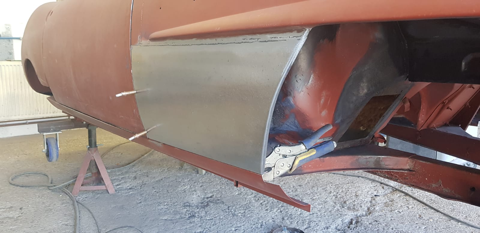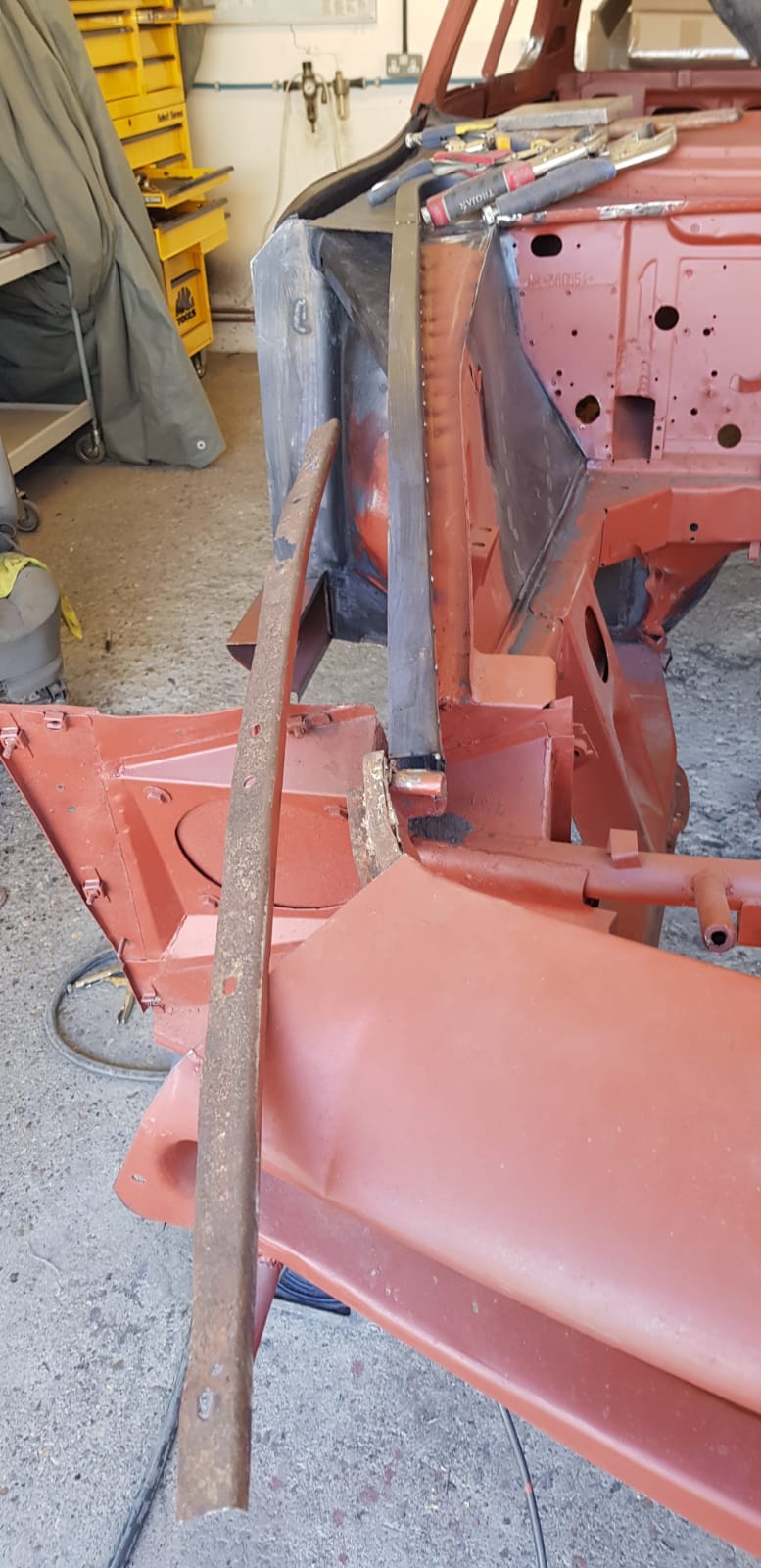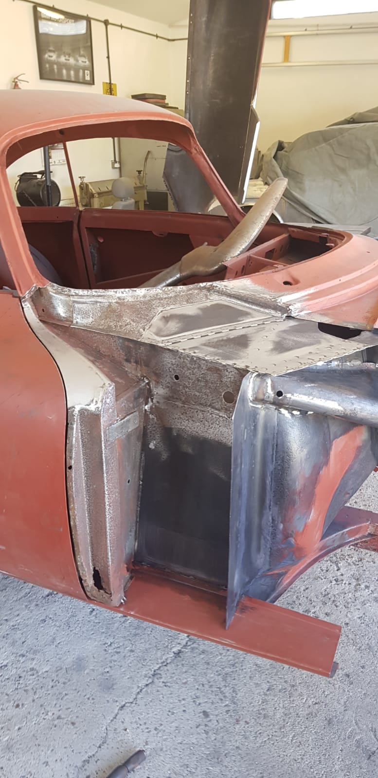 UPDATE - we now have one happy customer re-united with his lovely Pagoda 250SL, which is now a full convertible, with soft and hard-tops, as well as having had a mechanical re-fresh! One of our clients has asked us to convert a Mercedes-Benz 250SL California to a full convertible spec...This involves a lot of cutting and welding in a new section from a donor car, refitting, adding a soft top and much more - below you can see the new soft top in place. We now have the hard top to re-build so the client has the choice of soft top in summer or hard top for the rainy days.