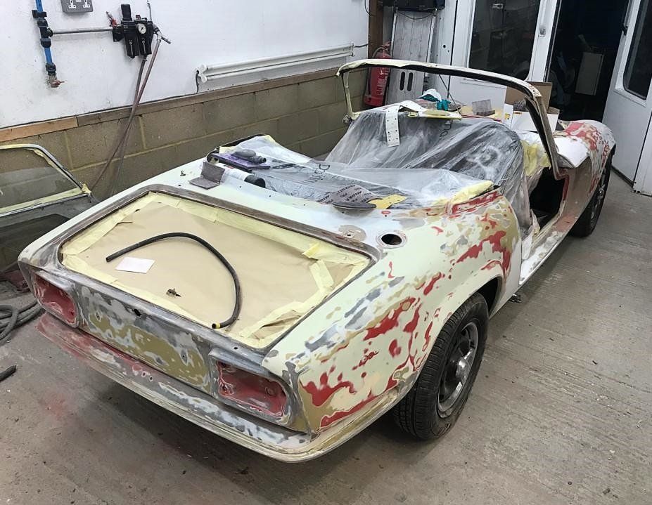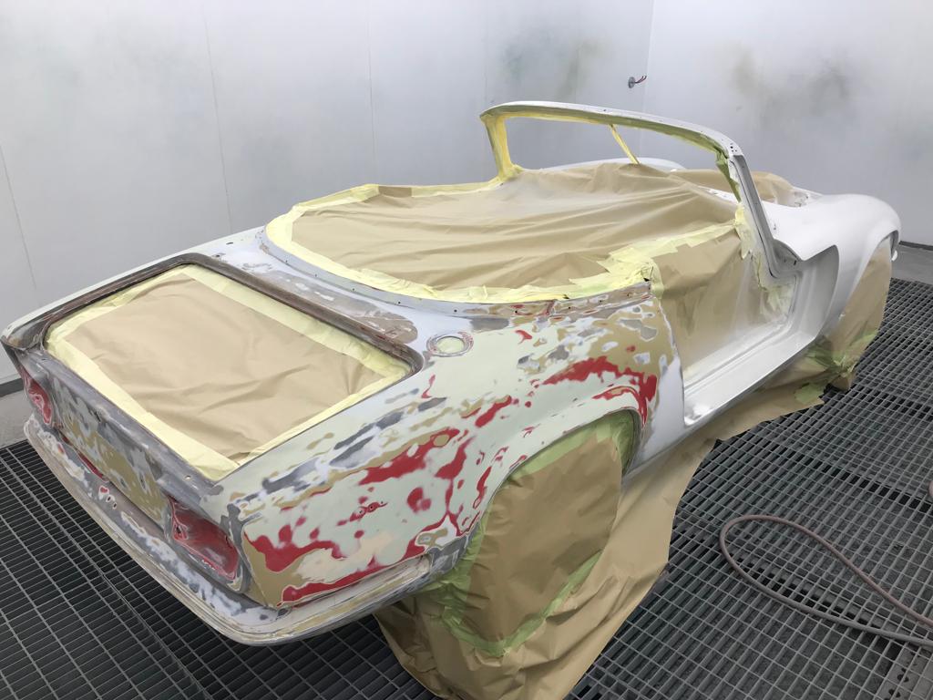 Another week with a focus on preparing cars for repaint – the Volvo P1800 has needed a whole lot of metalwork repairs to prepare it but is now almost ready for paint, while the Lotus Elan has been stripped, masked and primed and is ready for blocking down. Meanwhile we said farewell to one of our own cars, the fabulous Alfa Romeo Montreal, which we’ve worked on on days off over the past couple of years – we hope the new owner enjoys driving it as much as we did working on it!
