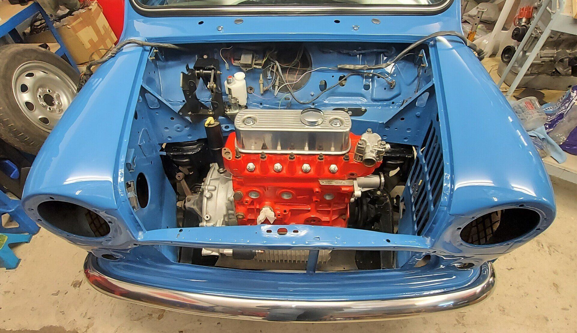 A very busy week at Templar Classics, and a great one for showing the wide variety of classics we get to work on! We’ve had a local Morris Minor van - a familiar sight around here - in for some suspension work, and a very smart white 1965 Triumph 2000 that is having its manual box swapped out for the automatic in the somewhat less smart green donor car. It’s also been a week for engine installs – the blue Mini and red Alfa SS were both reunited with their power plants this week; one more step to them being back on the road!