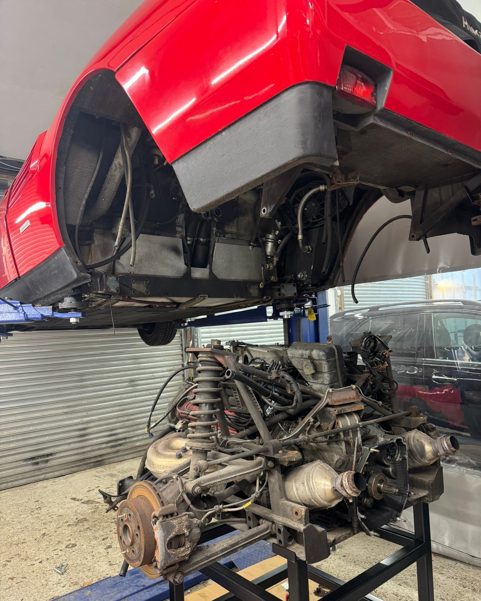 On the Italian side of things, we’ve got a Mondial in that’s been in long-term storage and in need of a major service and complete refresh – this week we’ve removed the tired engine and gearbox.