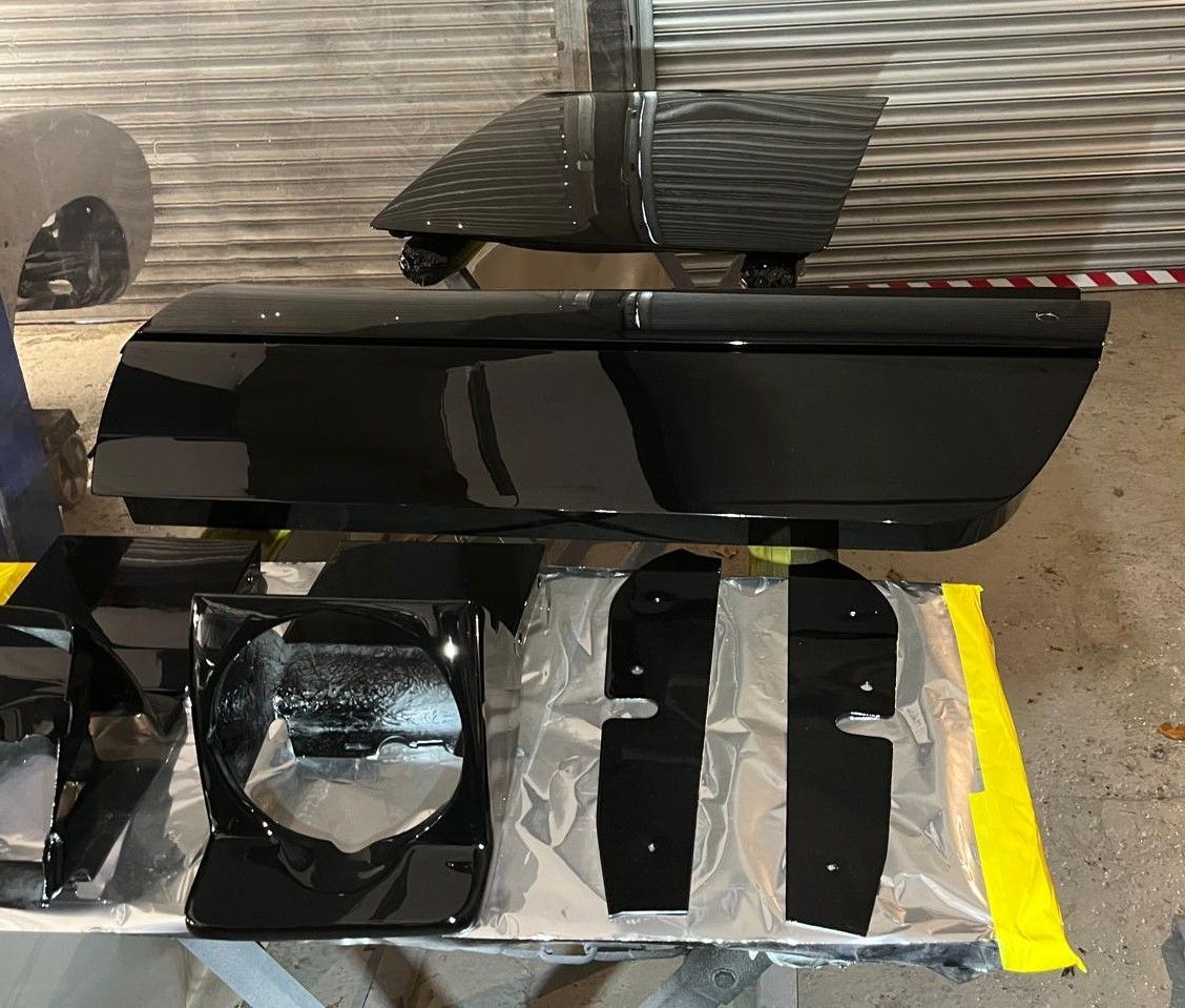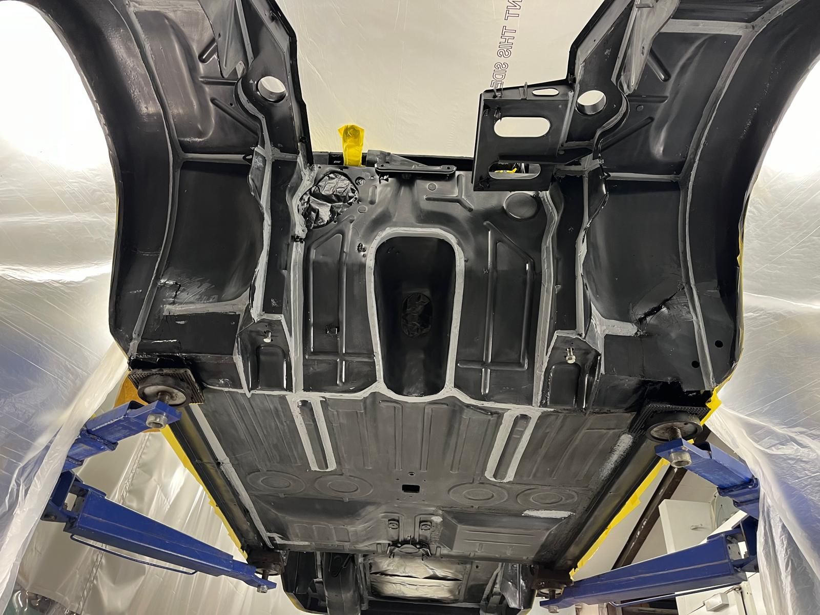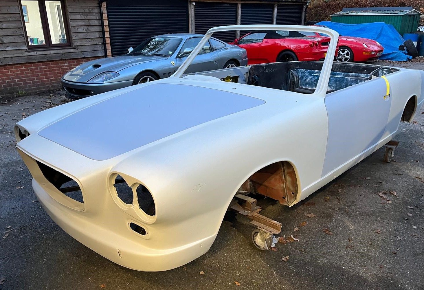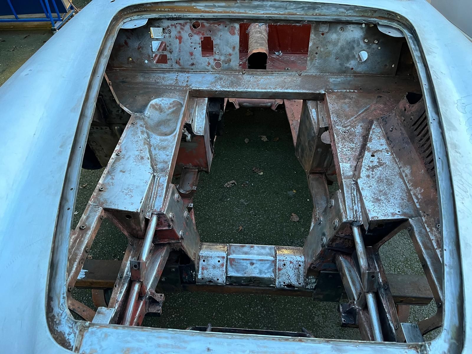 To the UK and Italy for our second post – the Aston DB6 engine bay and cabin are now bare-metalled before we carry out body repairs, the Lancia Fulvia convertible now has had it’s underside bare-metalled, epoxy prime seam sealed and raptor coated.