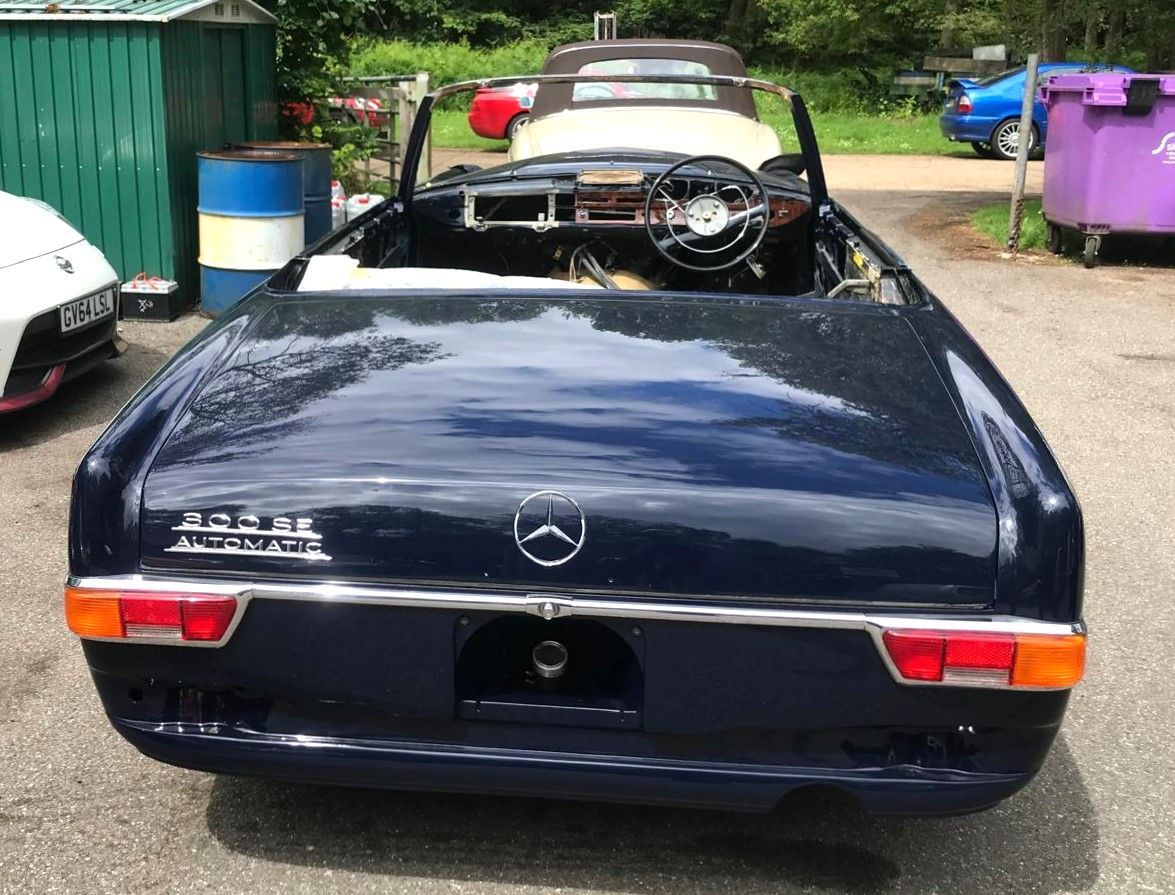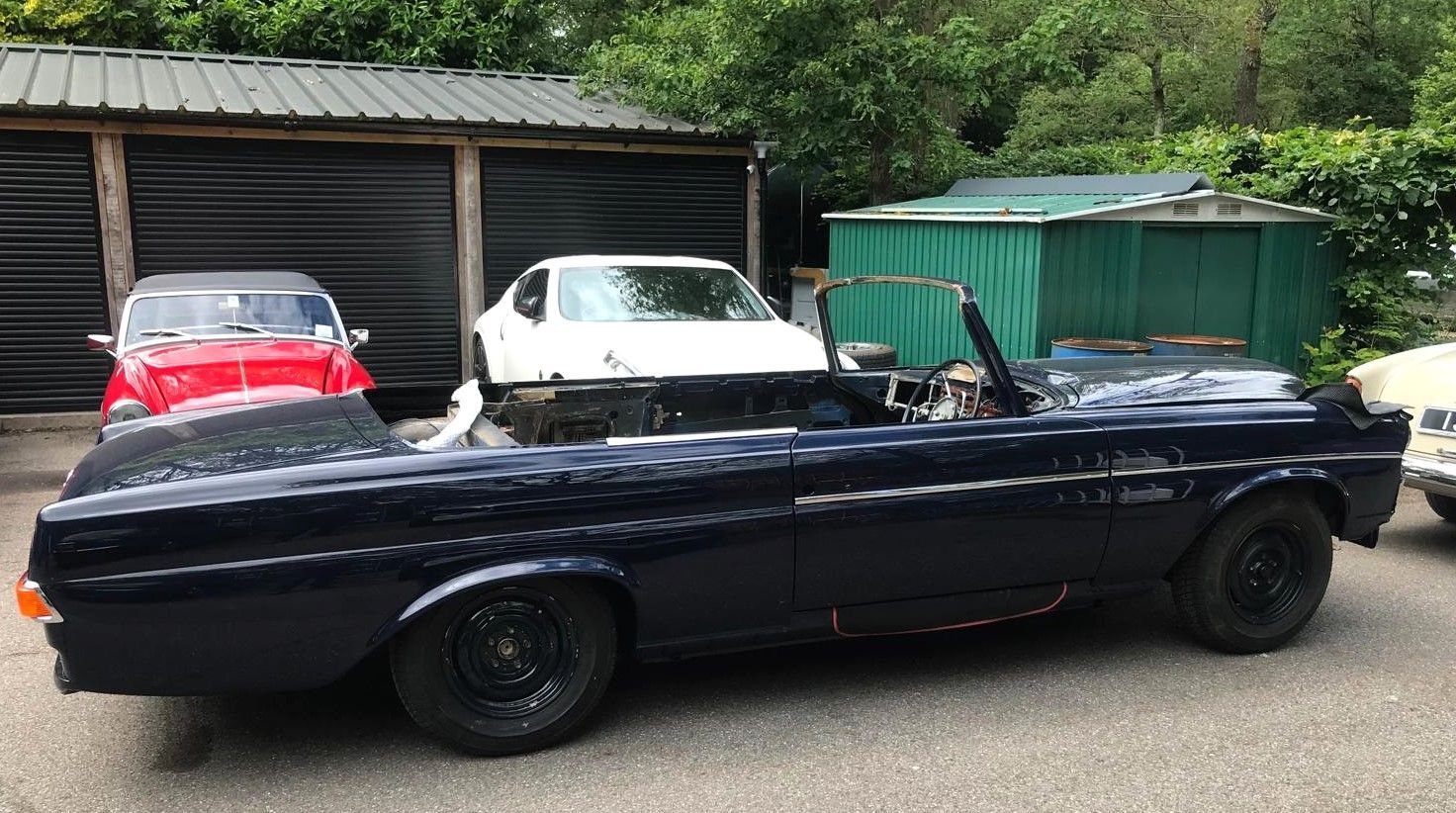 More Mercedes activity this week, as we got back to work on another long-term Mercedes restoration, this time the imposing 300SE convertible, in it’s smart coat of dark blue. We’ve now got this very big yet elegant car back on it’s wheels, but there’s still a long way to go…