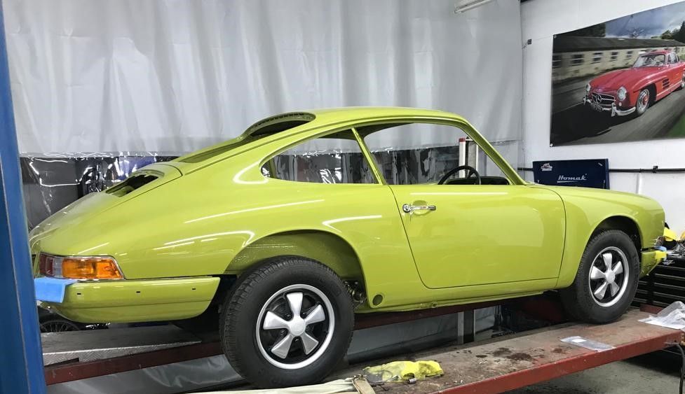 Another week of gradual progress across a number of projects this past week at Templar Towers. The Lotus Esprit is getting its very funky original colour trim re-fitted, and speaking of funky colours, the Porsche 912 is now back on it’s wheels – love those Fuchs alloys!