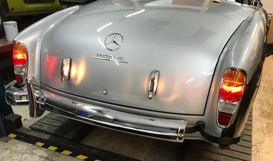 We’re also getting ever closer to completion of the fabulous Mercedes 220S Convertible – the wiring loom has gone in and we have lights! We’ve been delayed a bit waiting for the exhaust to be finished and the roof is now being fitted - just a few more weeks to go!