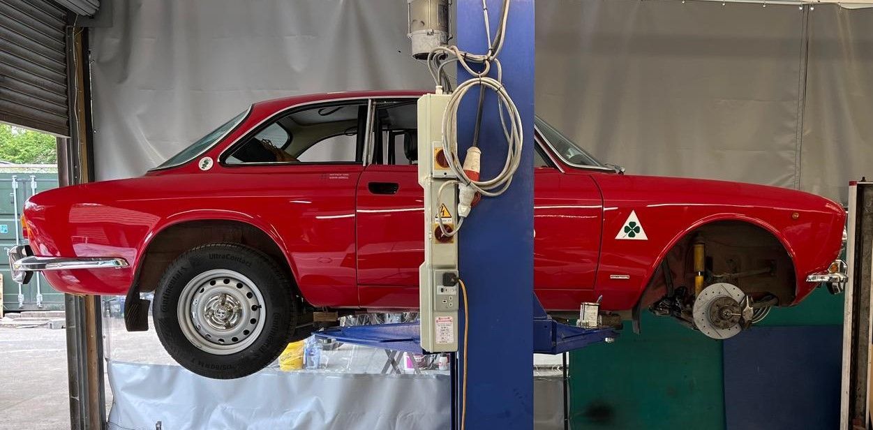 We have an Alfa in for rollover bar fitting plus brake discs and some trim parts – such a pretty car! Having a workshop move around to make room for new compressor.