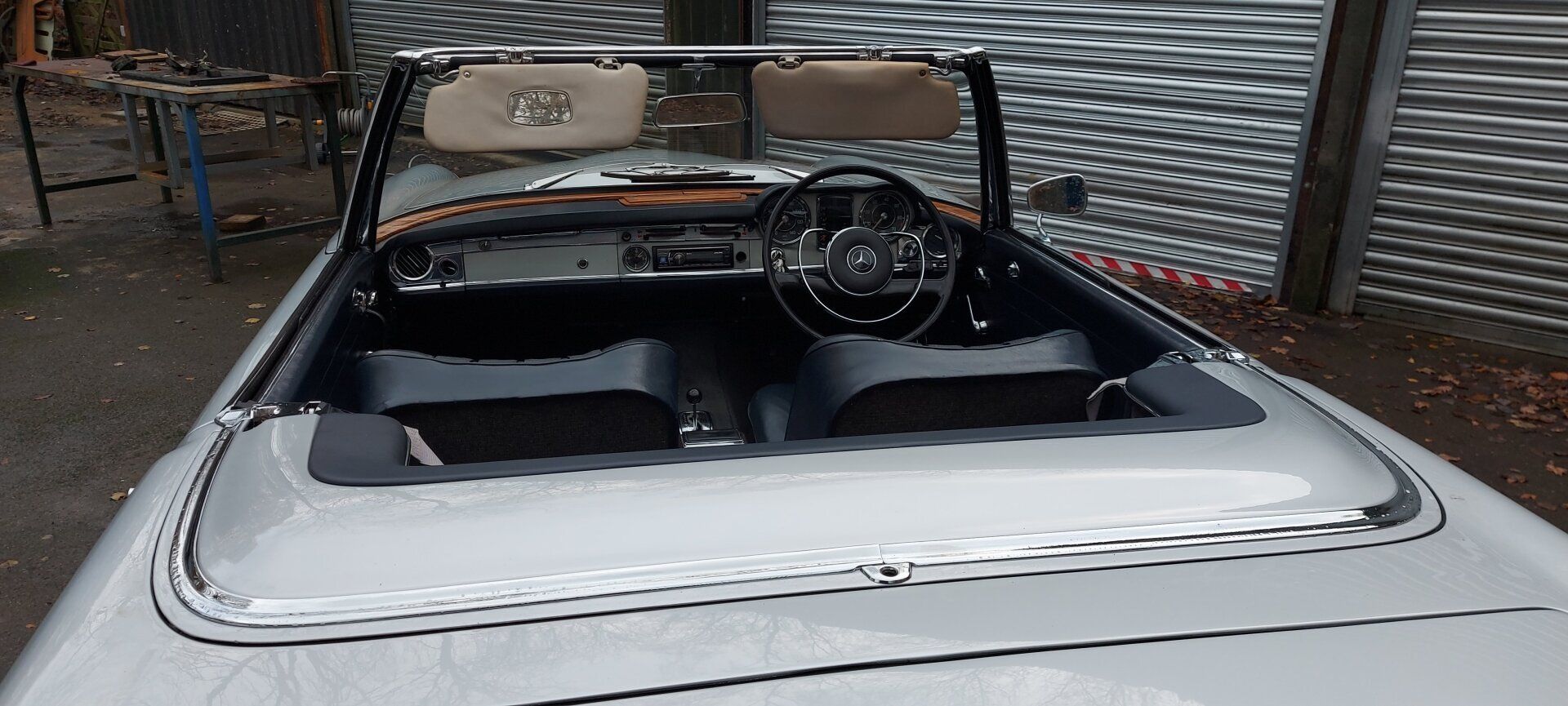 UPDATE - we now have one happy customer re-united with his lovely Pagoda 250SL, which is now a full convertible, with soft and hard-tops, as well as having had a mechanical re-fresh! One of our clients has asked us to convert a Mercedes-Benz 250SL California to a full convertible spec...This involves a lot of cutting and welding in a new section from a donor car, refitting, adding a soft top and much more - below you can see the new soft top in place. We now have the hard top to re-build so the client has the choice of soft top in summer or hard top for the rainy days.