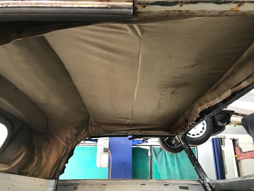 The (will be) gorgeous Mercedes 220S is shown with the old roof fitted before it goes for refurb – you can see just how bad it is which is a reflection of how the rest of the car was when it came to us; it’s been, and remains, a challenging project.