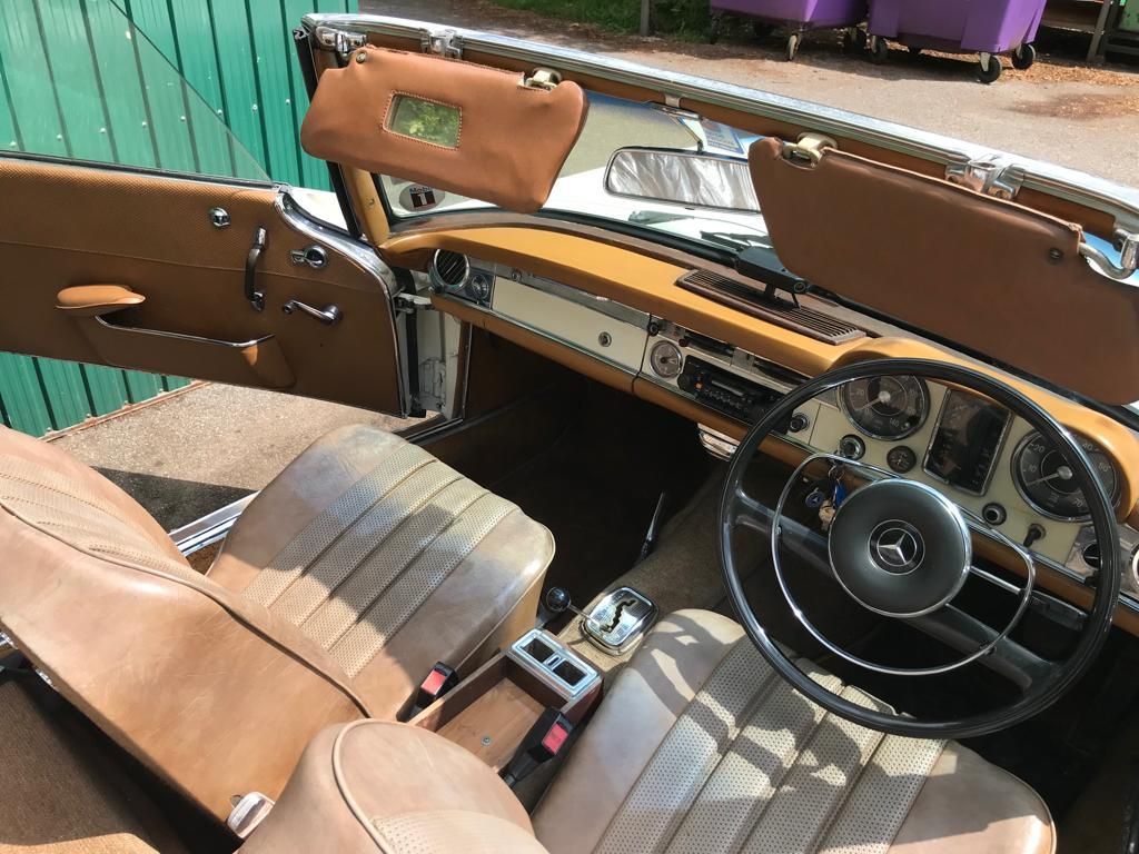 Staying with the three-pointed star, we’ve also got a Pagoda with us – the very tired interior has now been stripped out ready for the next stage of what will be a full body restoration of this supremely stylish classic.