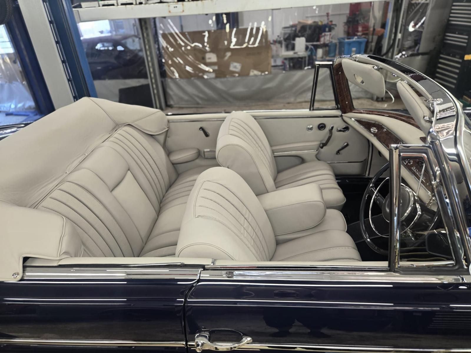 Two elegant classic Mercedes to focus on for this post – after re-fitting exterior and interior trim, the imposing dark blue 300SE just needs to be reunited with it’s newly-rebuilt engine before it can be returned to it’s owner – it looks amazing, even if we say it ourselves.